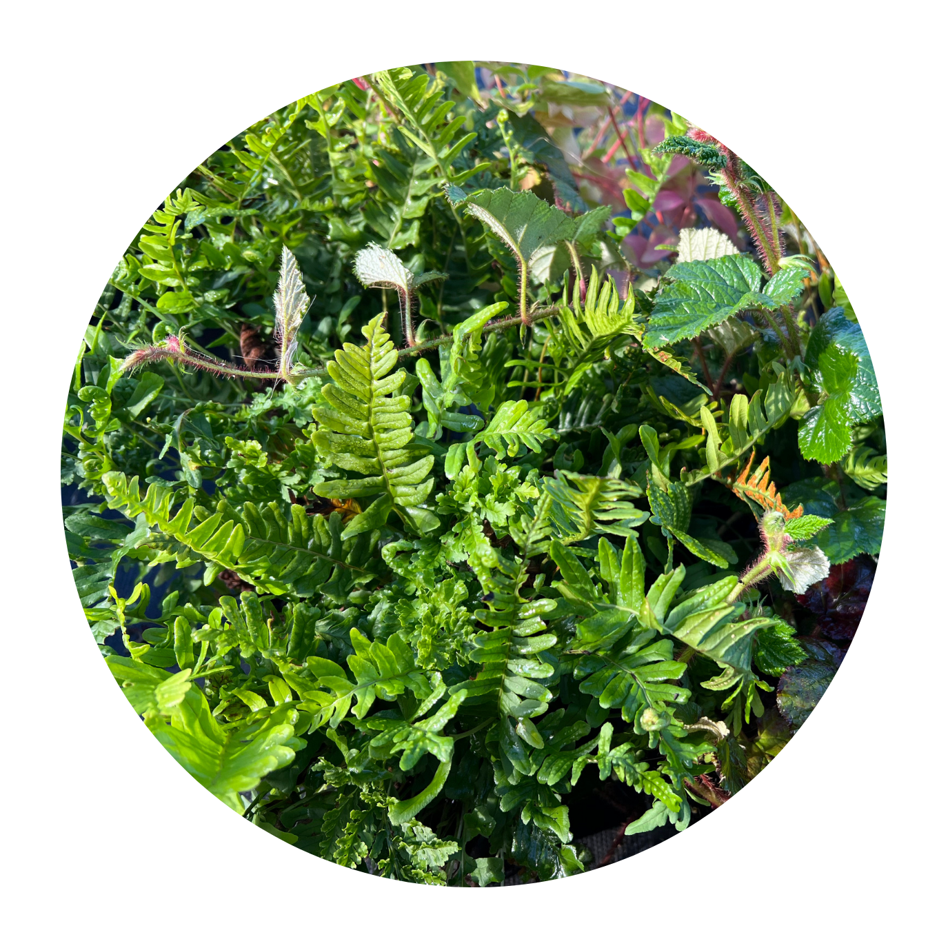Ekstra grøn og frodig, og indeholder saftfyldte og synlige bladstrukturer. Plantesammensætningen fokuserer på strukturdannende bladformer som drager øjet og skaber et roligt udtryk. Bregner, storbladede stauder og småbuske giver det karakteristiske udtryk.