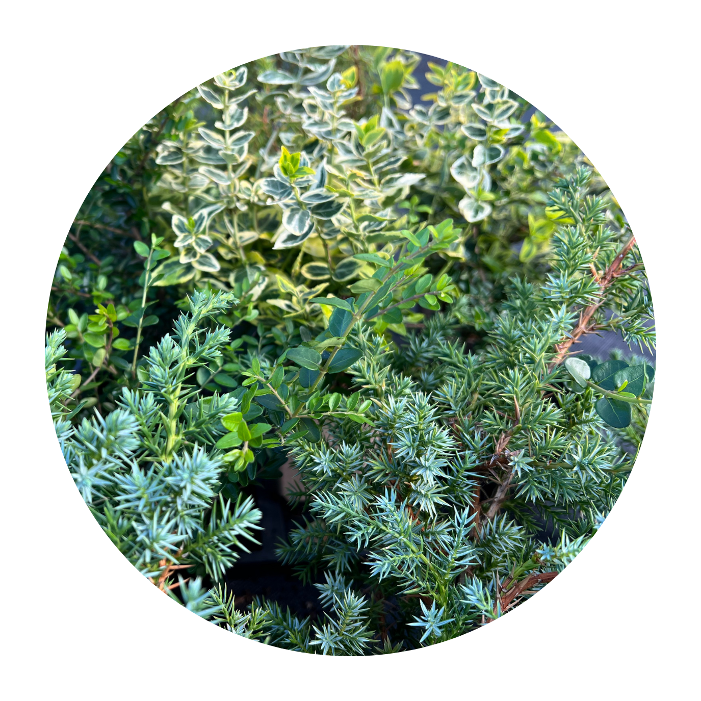 Høj andel af stedsegrønne stauder, græsser og småbuske. Fremstår frodig og grøn hele året rundt. Enkelt blomstring og bærsætning. Stedsegrønne småbuske danner skjul, og mulighed for sangfugles redebygning. Plantesammensætningen blotter kun frontmaterialer i mindre grad om vinteren.