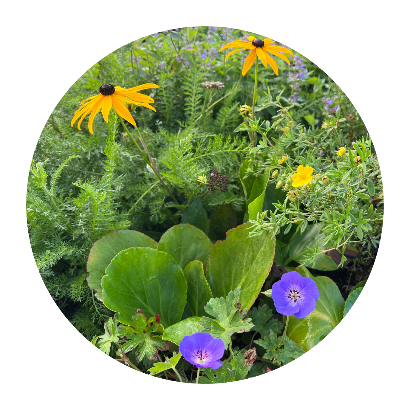 Blomsterrig og frodig. En plantesammensætning der stråler af sommer og sol i de varme måneder og skaber blikfang. Overvejende stauder og enkelte græsser. Sommer- og vinterperioderne vil stå i kontrast til hinanden, da plantesammensætningen vil trække sig i vintertilstand, og blotte det valgte frontmateriale.